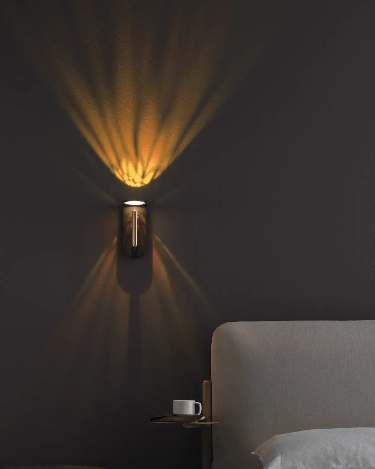 1Night è molto più di una semplice lampada: è un raffinato oggetto di design che combina estetica e tecnologia. Il suo cilindro ruotabile e orientabile offre un’illuminazione precisa e confortevole, perfetta per la testiera del letto o un angolo lettura sofisticato.