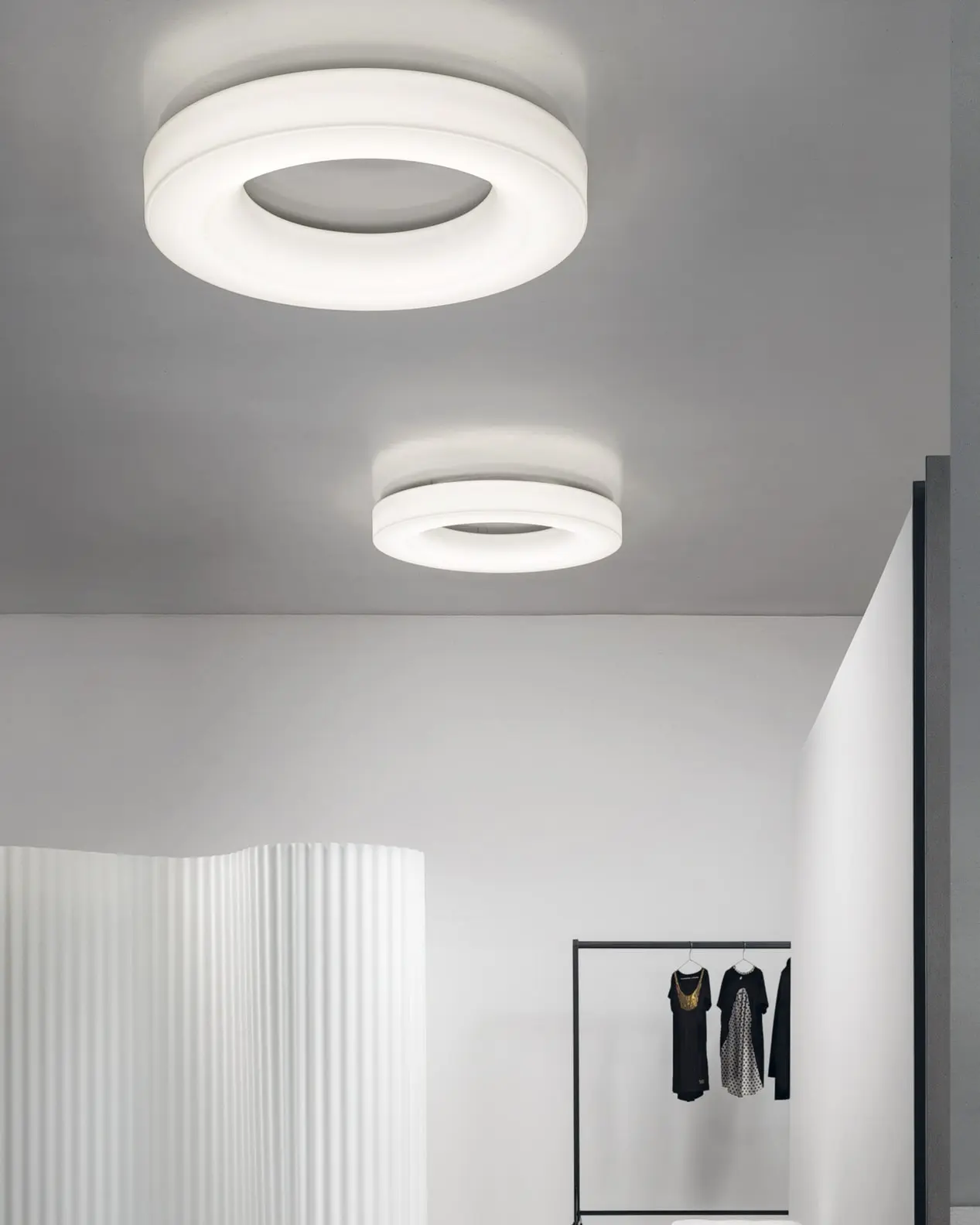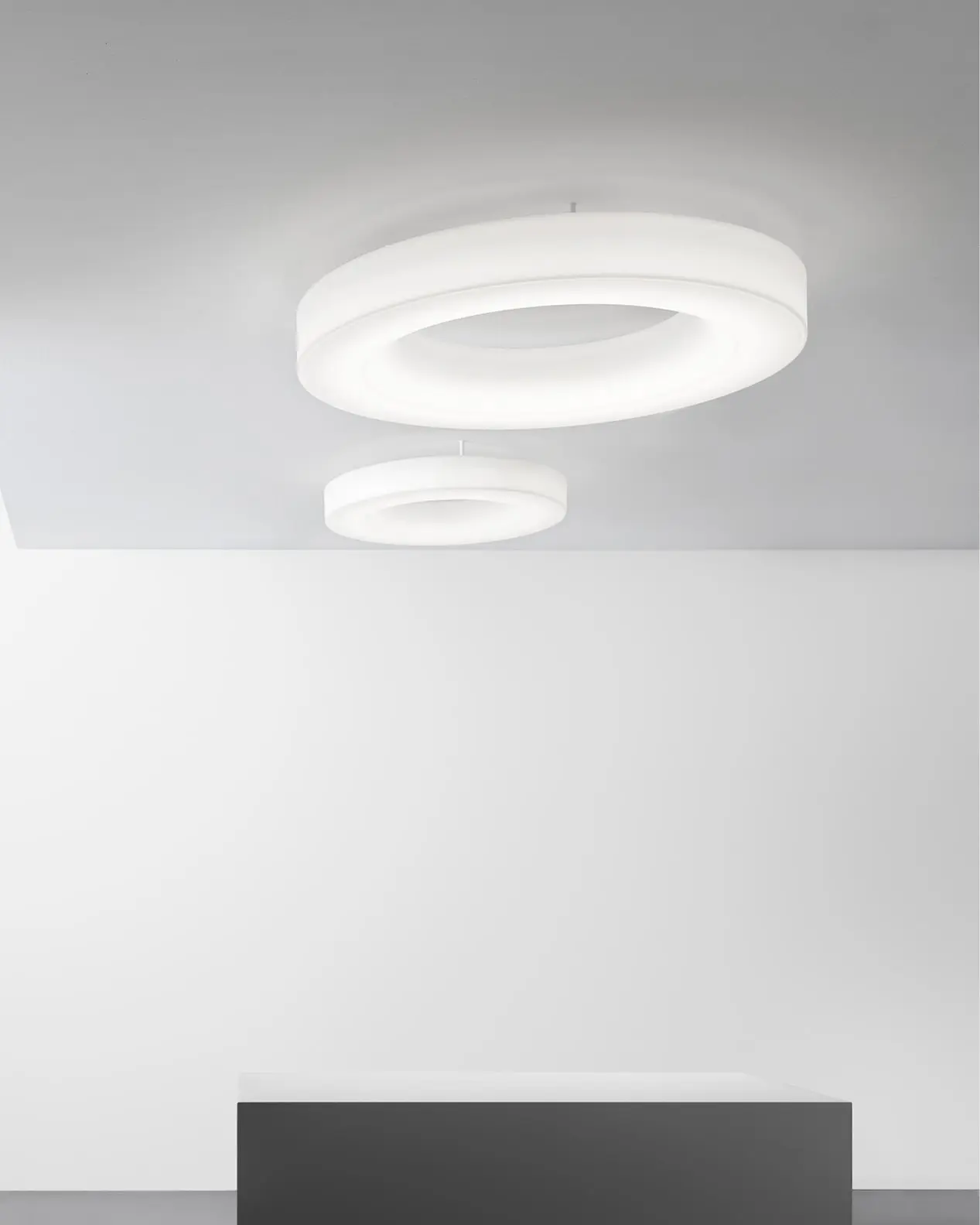 Saturn è un anello di luce pura, capace di ridefinire gli spazi con la sua presenza scultorea. Disponibile in due diametri, si impone con eleganza negli ambienti contemporanei, offrendo un’illuminazione uniforme e performante.