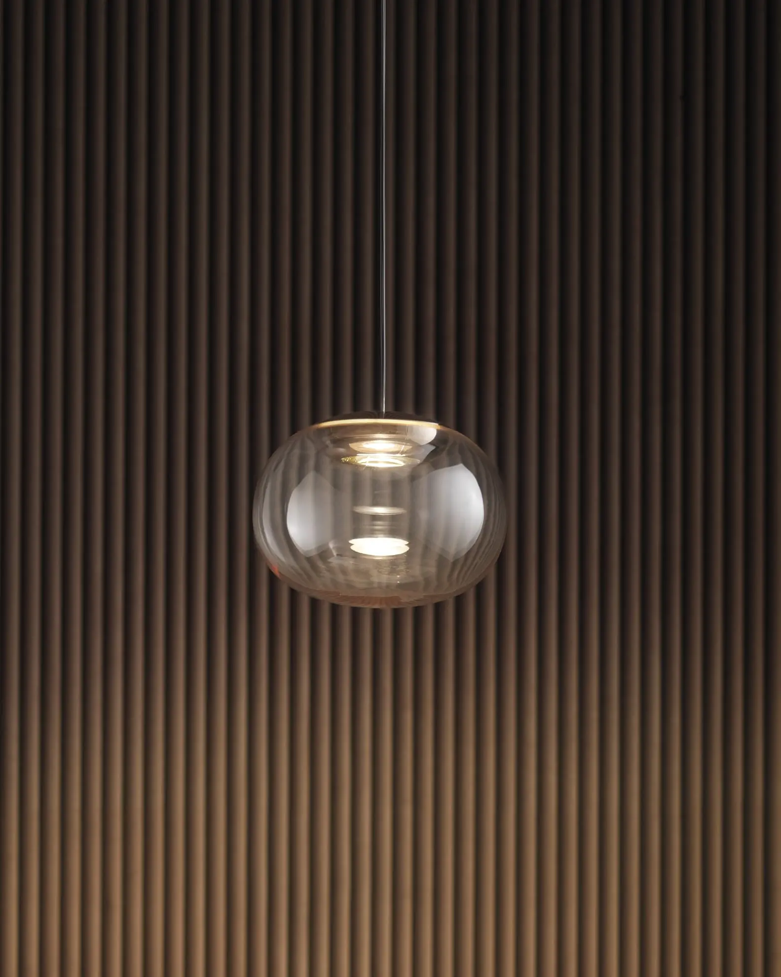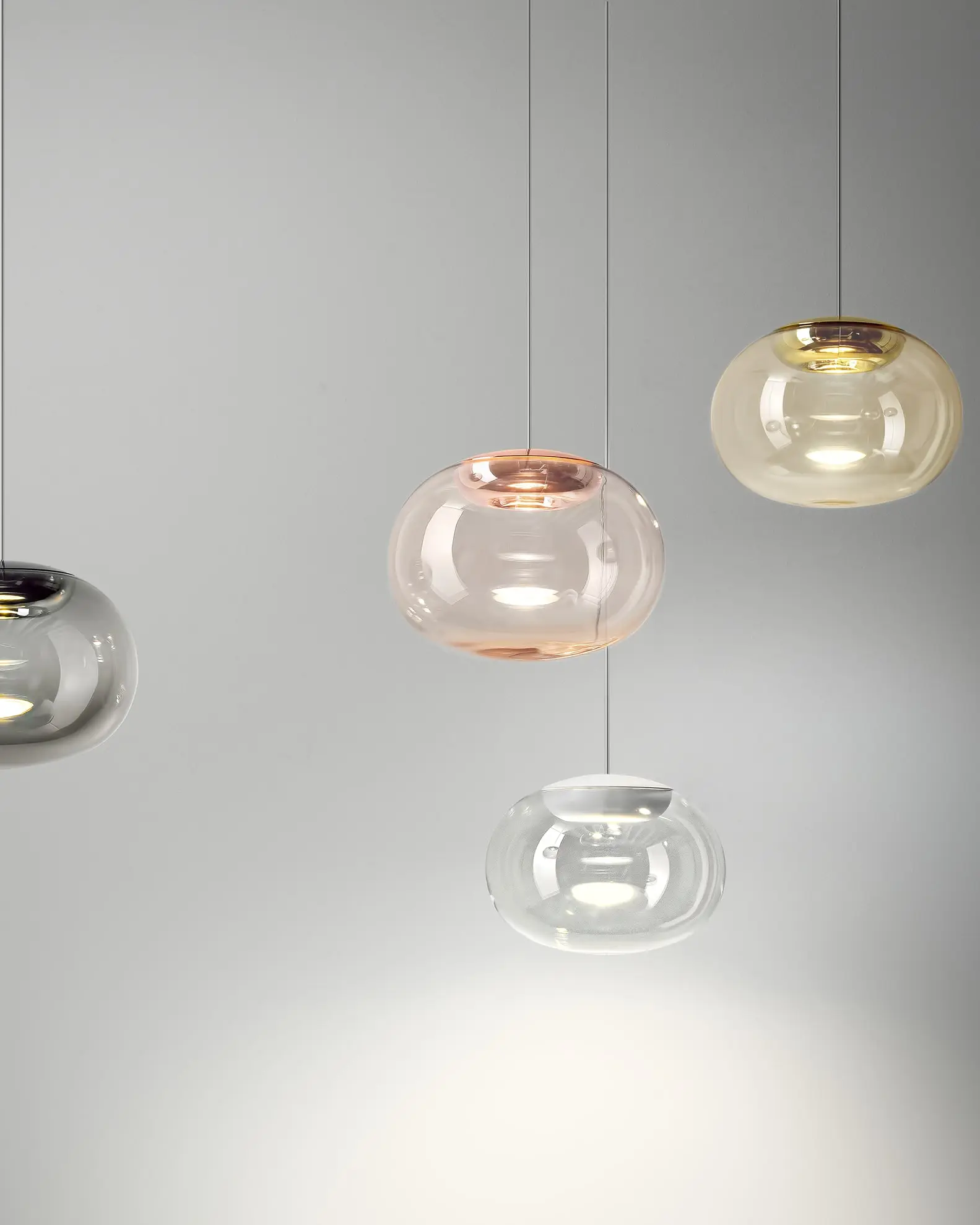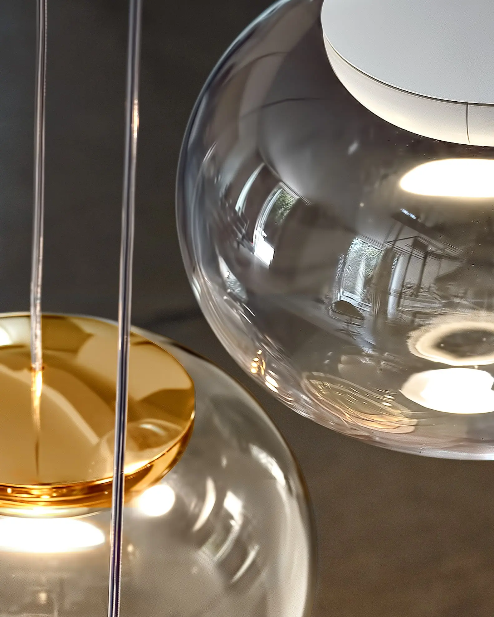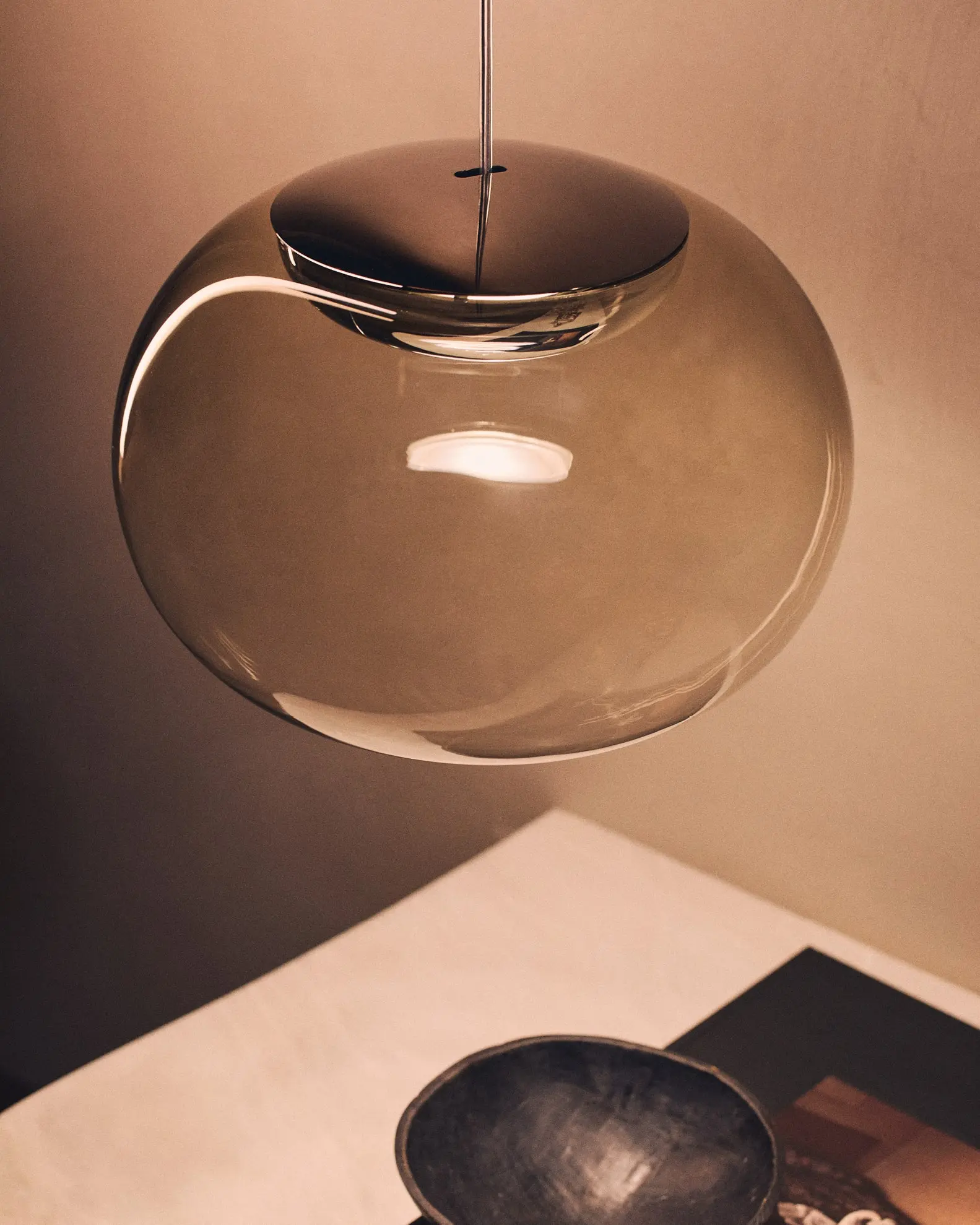 La Mariée è una sintesi perfetta tra leggerezza e materia. Una sfera di vetro soffiato che si illumina dall’interno, rivelando una luce avvolgente e discreta. Il gioco di riflessi sulle superfici trasparenti e metallizzate crea un’atmosfera intima, impreziosendo ogni ambiente con un tocco di sofisticata raffinatezza.