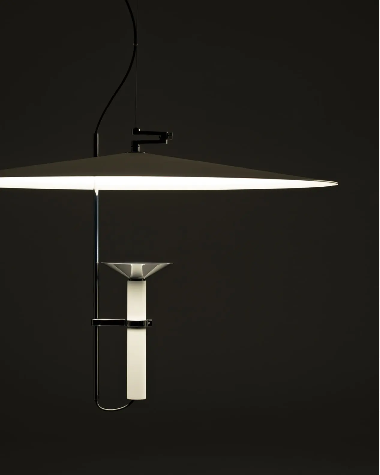 Nel cuore di Luna vive un sistema di bilanciamento a snodo brevettato, che permette di modulare la proiezione luminosa con naturalezza e precisione.
