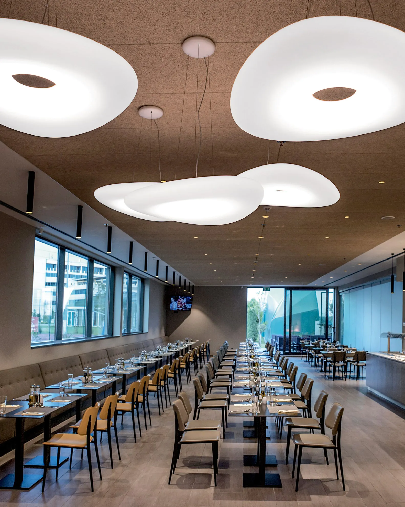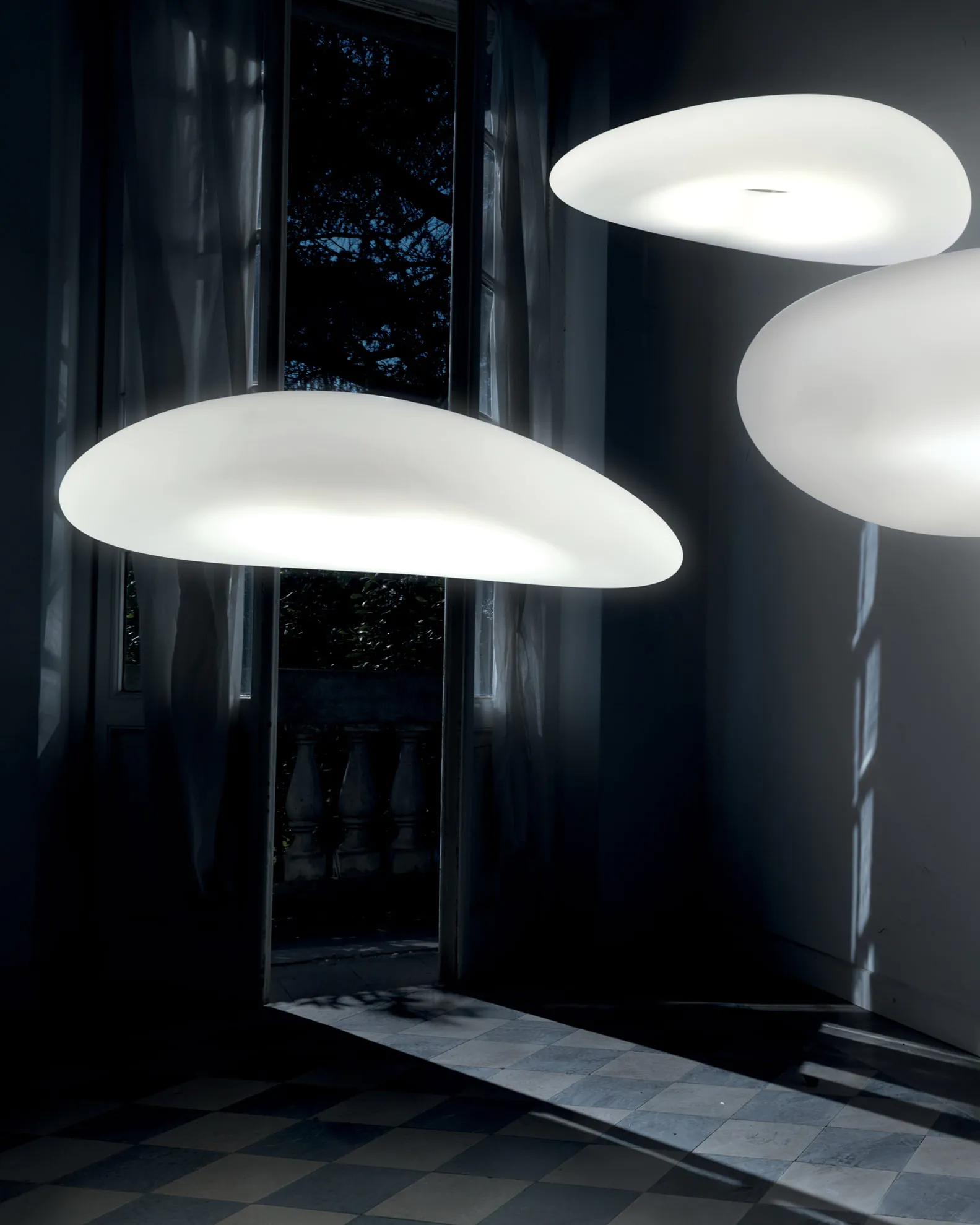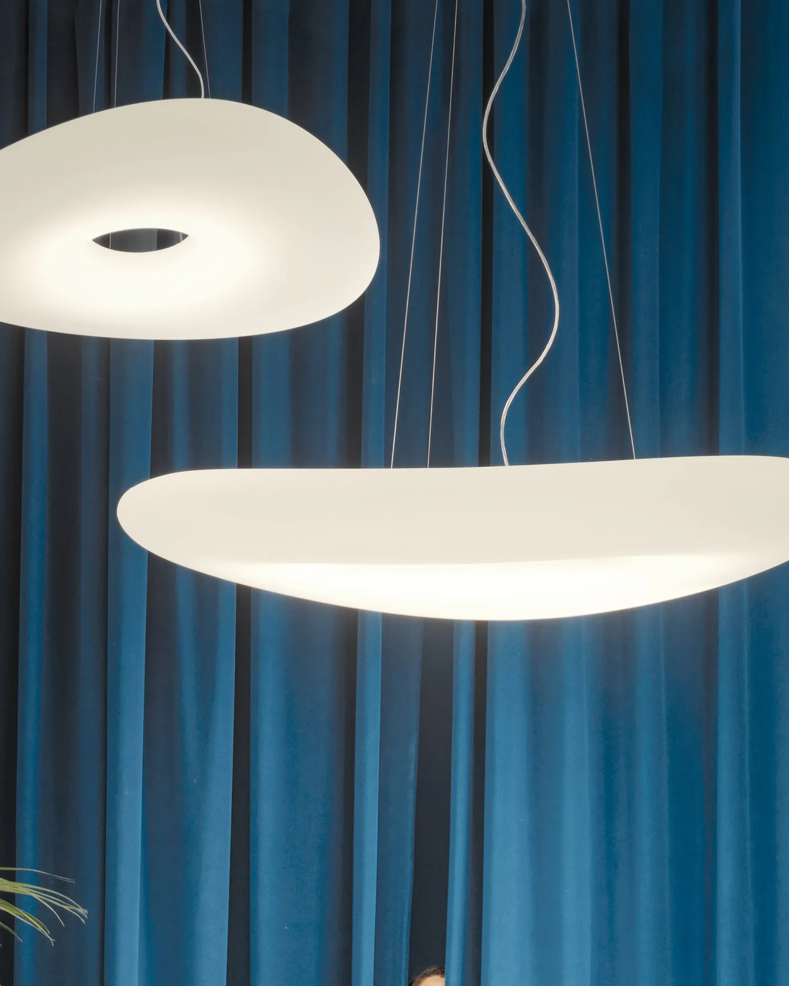 Mr Magoo è una sospensione che fluttua nell’aria come una soffice nuvola. Le sue linee morbide e avvolgenti conferiscono leggerezza all’ambiente, creando un’atmosfera sospesa tra design e poesia.