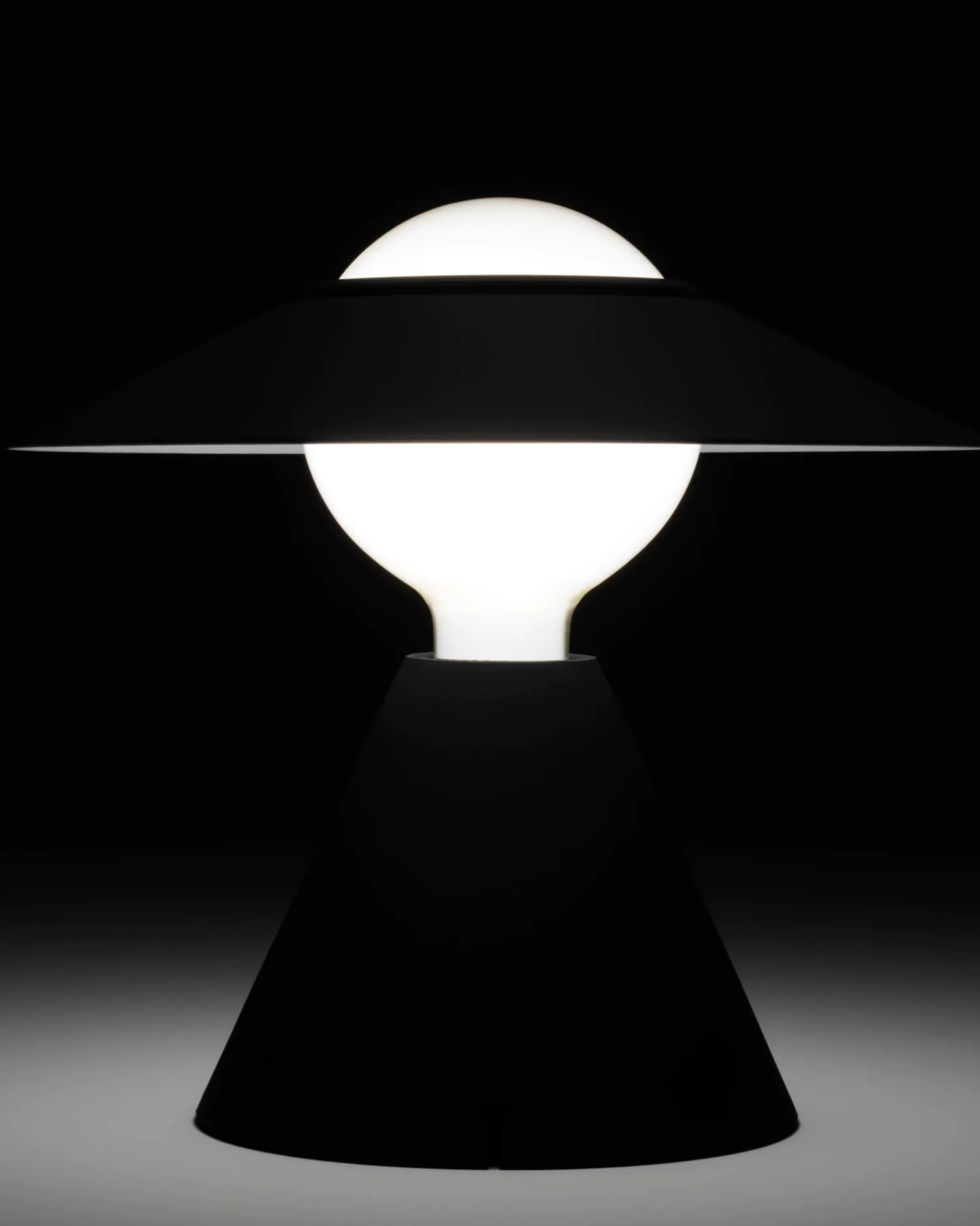 Il suo design ricorda una figura femminile elegante: il riflettore sulla testa della lampadina, simile a un cappello a tesa larga, non solo caratterizza la forma, ma orienta la luce, offrendo un gioco di chiaroscuri e riflessi.