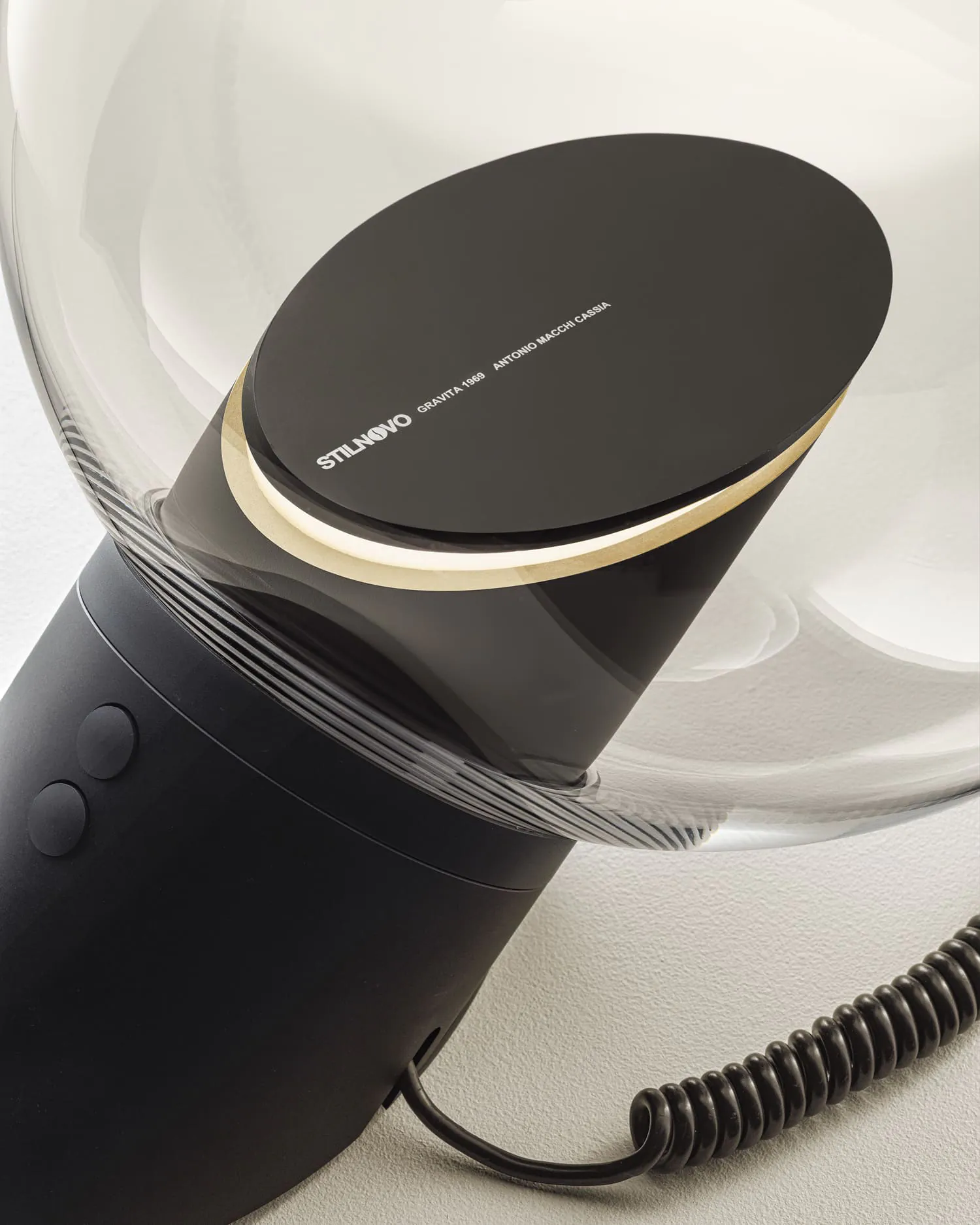 Creata nel 1969, Gravita è una testimonianza della visione avanguardista di Antonio Macchi Cassia. Questa lampada iconica sfida il tempo e i confini del design, incarnando l’equilibrio tra innovazione e semplicità.