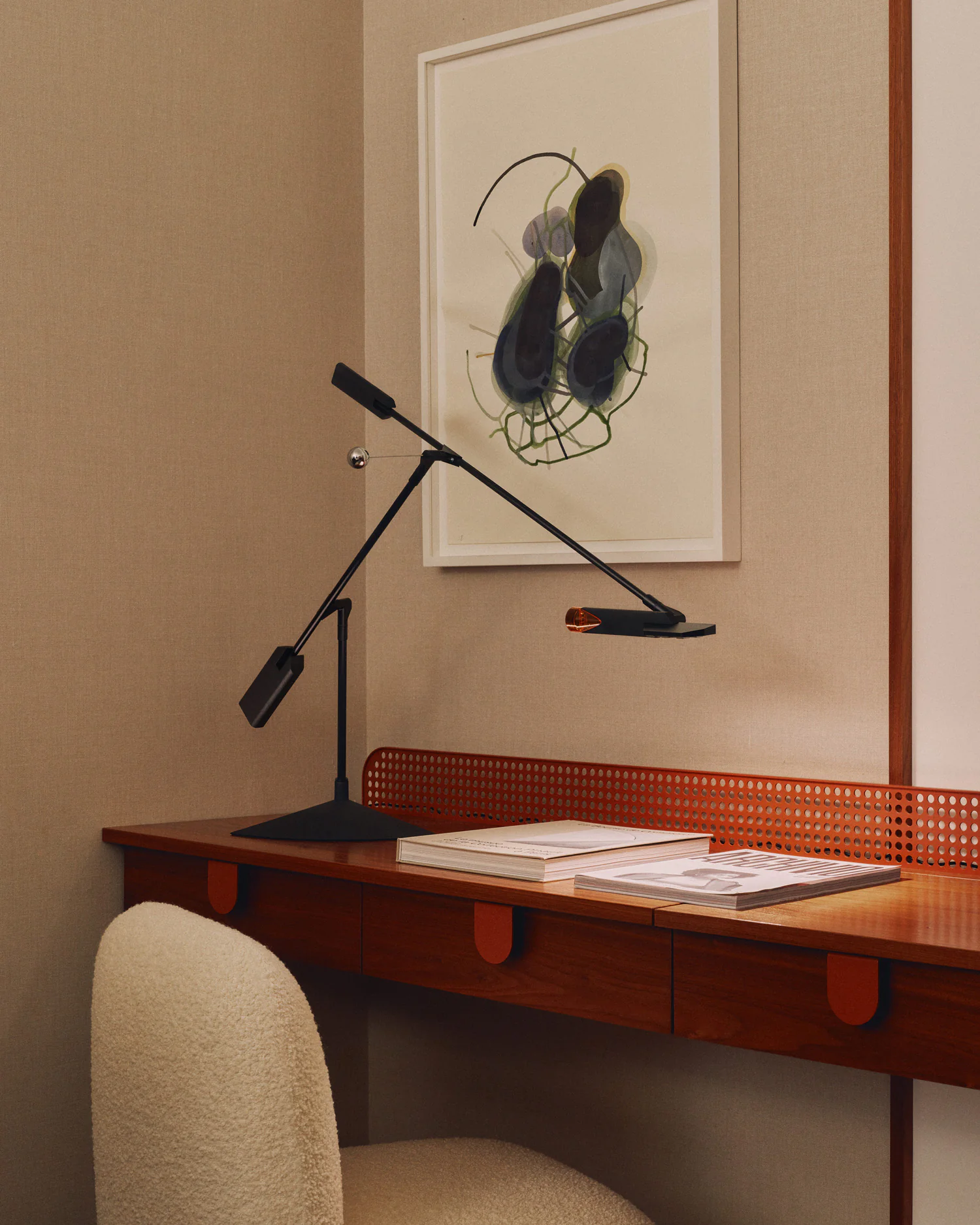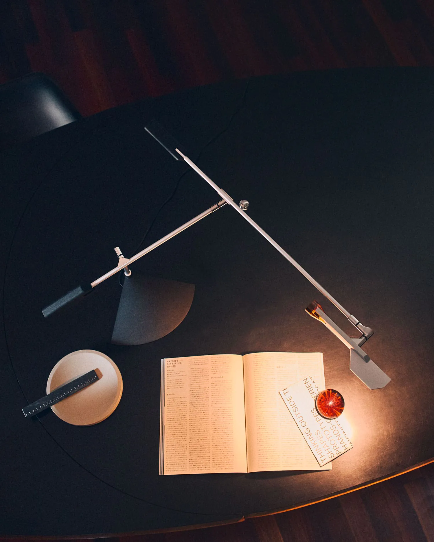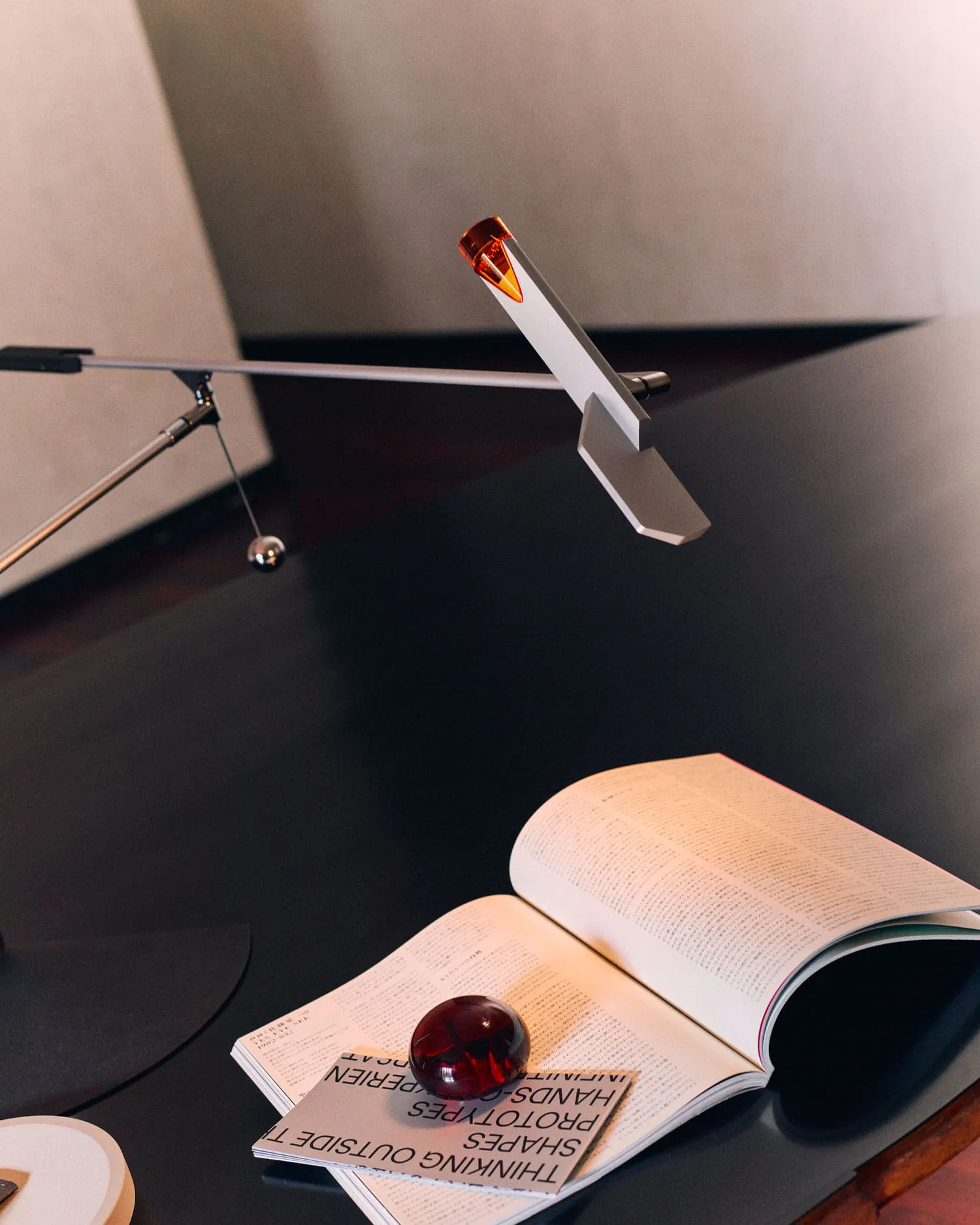 Halley è una struttura orbitale che consente letteralmente tutti i movimenti possibili, rimanendo fermi nella propria posizione, muovendo la testa della lampada e utilizzando soltanto una mano. Grazie a ben 6 snodi e 360 gradi di rotazione per ciascuno, la lampada può muoversi liberamente in uno spazio tridimensionale. La sfera funge da equilibratore dell’intero peso dell’apparecchio, garantendone la stabilità.