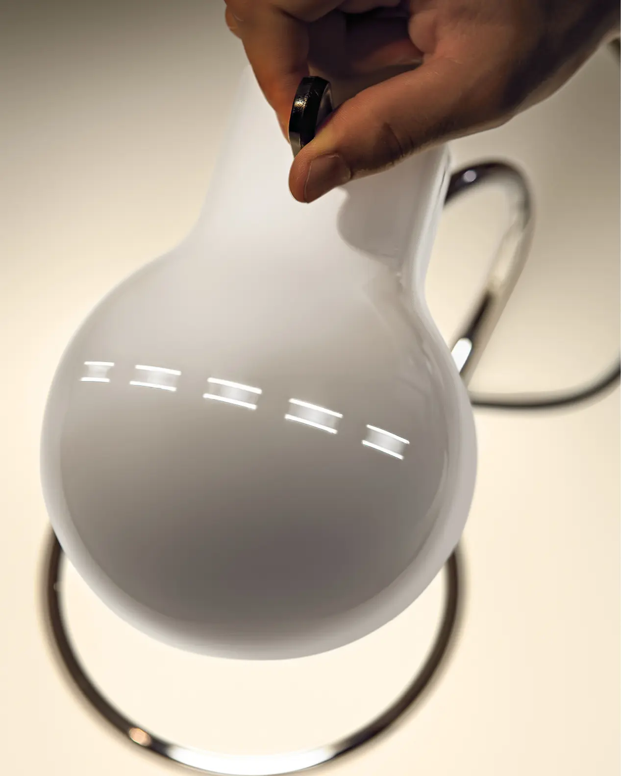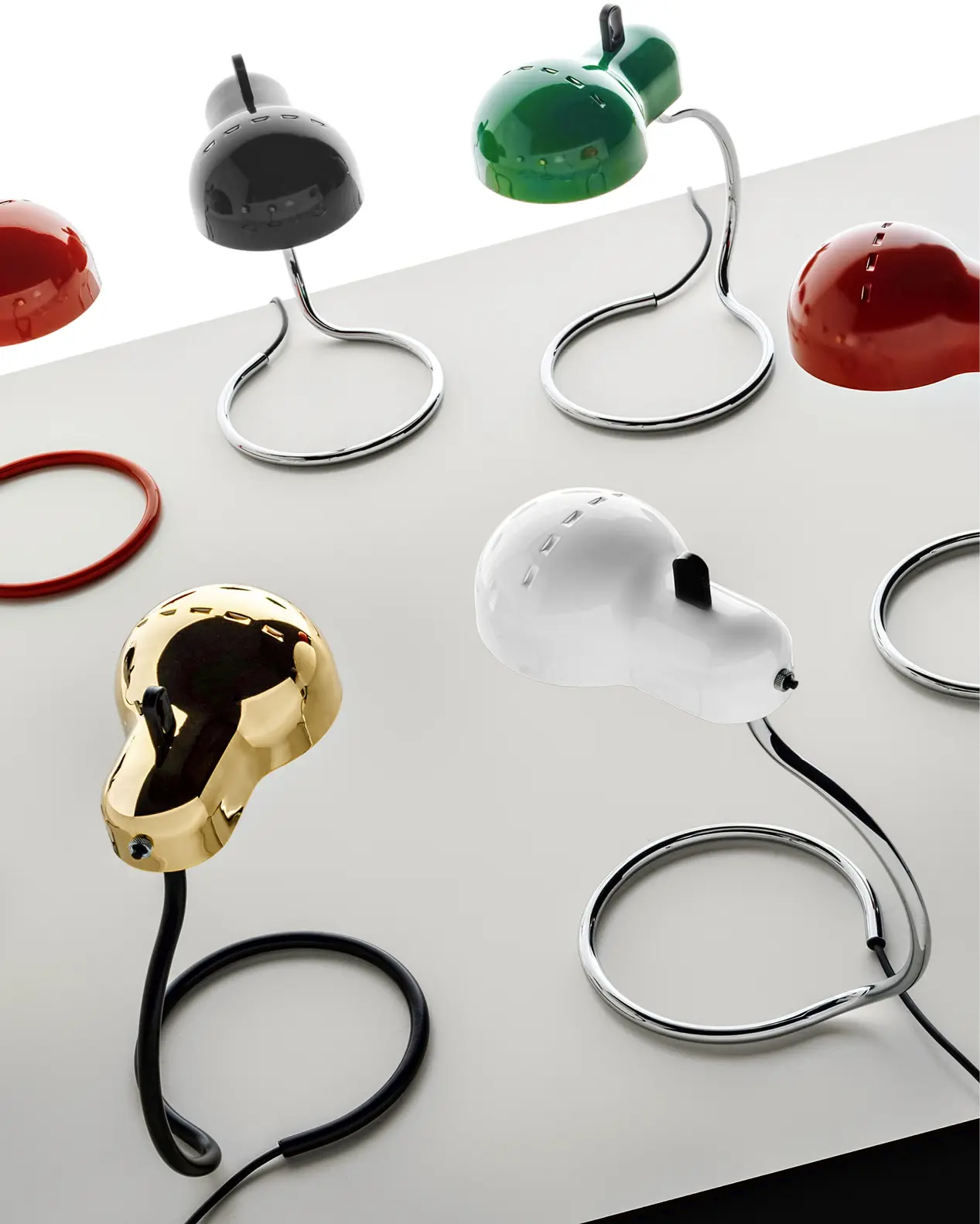 Minitopo è una lampada che incarna l’eleganza del design automobilistico anni ’60. Le fessure sulla calotta sono un chiaro omaggio alle prese d’aria delle auto sportive, mentre il paralume avvolge la lampadina E27, creando una connessione tra il design industriale e l’illuminazione. Il risultato è una lampada unica dal carattere distintivo e ironico, il cui nome rimanda a una forma che ricorda un topolino.