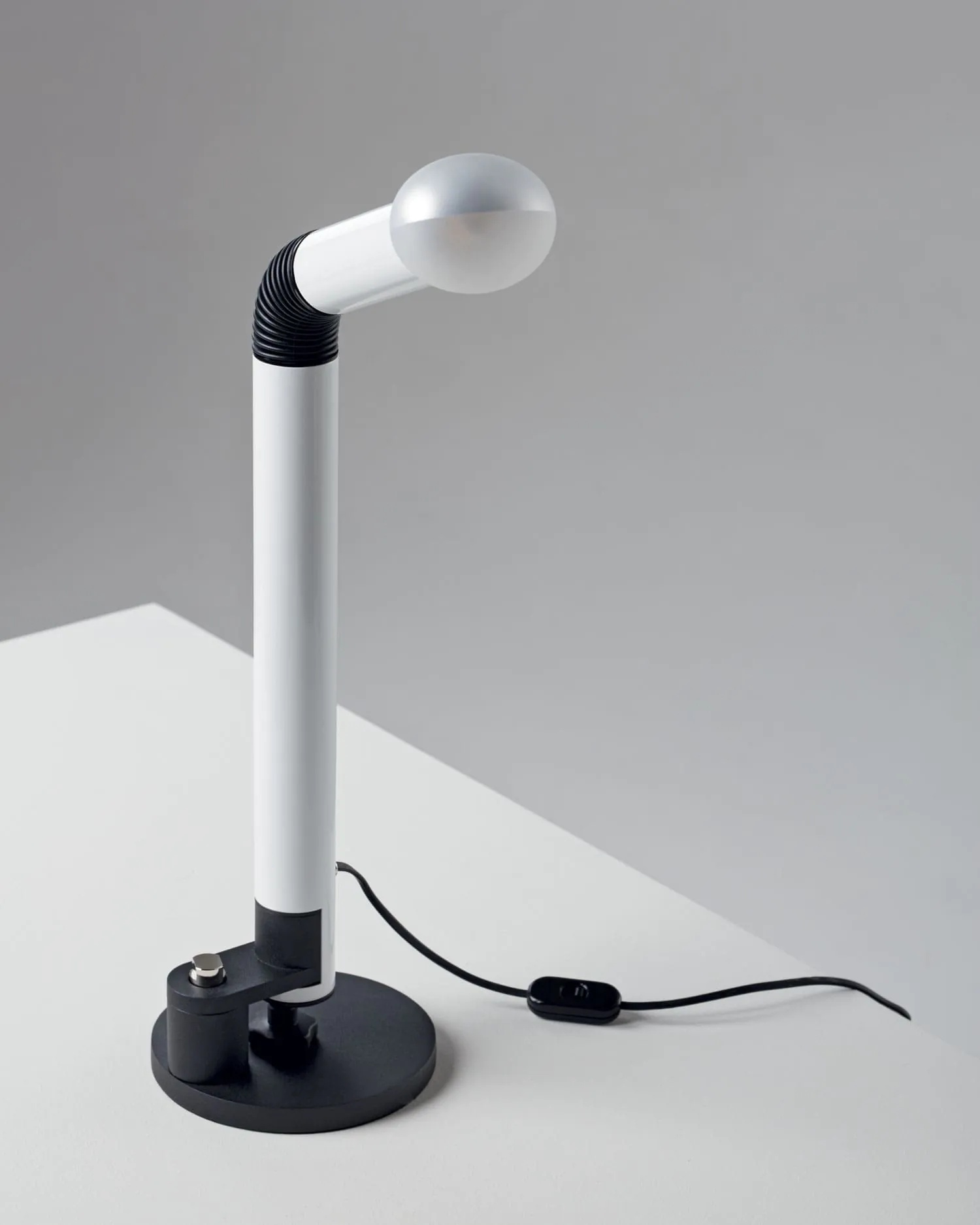 La lampada da tavolo Periscopio, disegnata nel 1967 durante l’epoca d’oro della “space age”, rappresenta una delle più autentiche espressioni di quel fervore progettuale sospeso tra innovazione e visione. Ispirata alle suggestioni dell’esplorazione spaziale, Periscopio riflette, attraverso il suo rigore formale e la sua essenzialità, una concezione del design che supera il tempo e le mode. Oggetto emblematico della nostra tradizione, unisce sapientemente funzione e poetica industriale, mantenendo intatta la sua capacità di dialogare con gli interni più raffinati e con chi sa riconoscere il valore della vera ricerca progettuale.