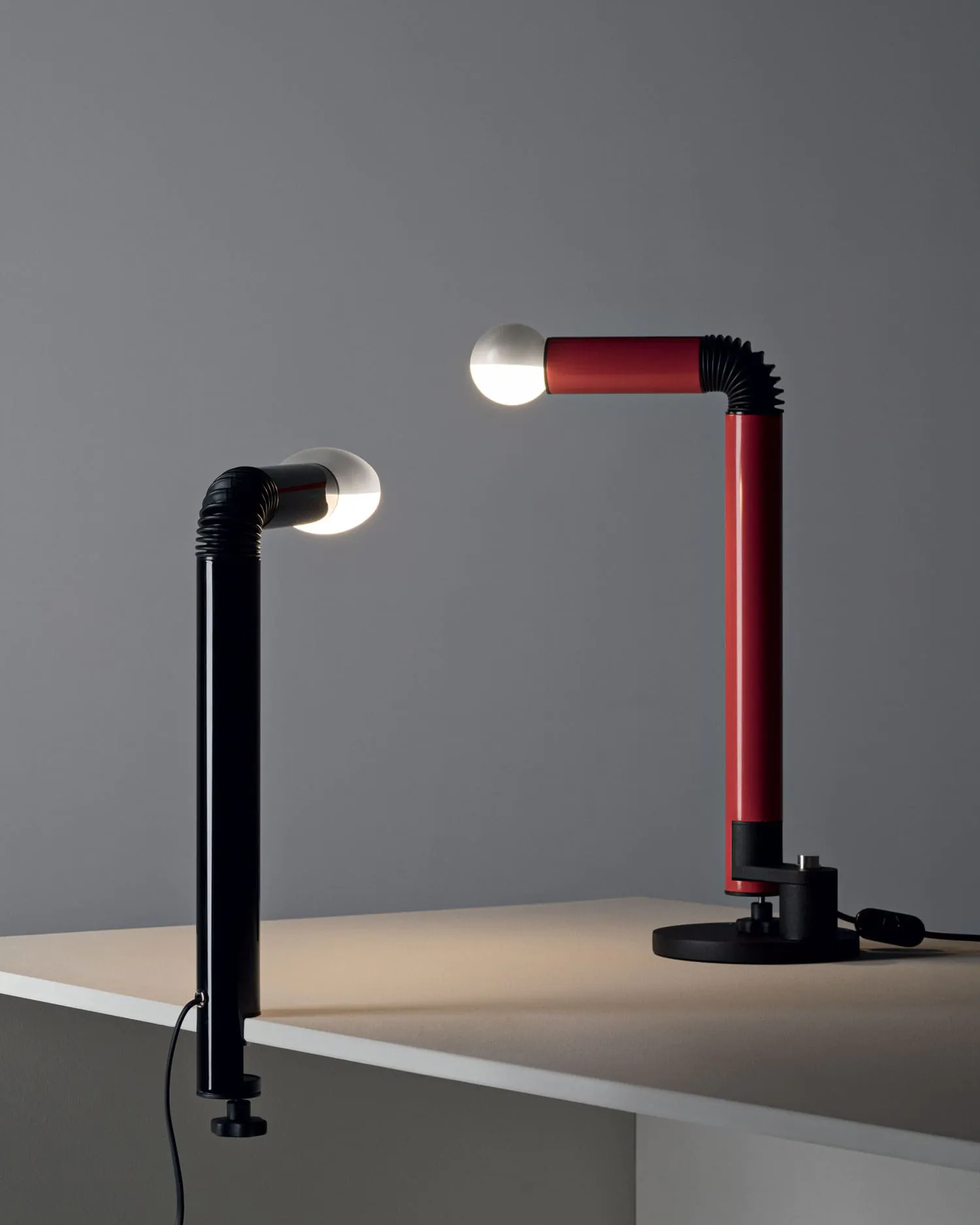 Periscopio può essere utilizzata non solo come lampada da tavolo, ma anche come lampada a morsetto. Rimuovendo la base in metallo, la lampada diventa una soluzione perfetta per spazi ridotti e ambienti di lavoro.